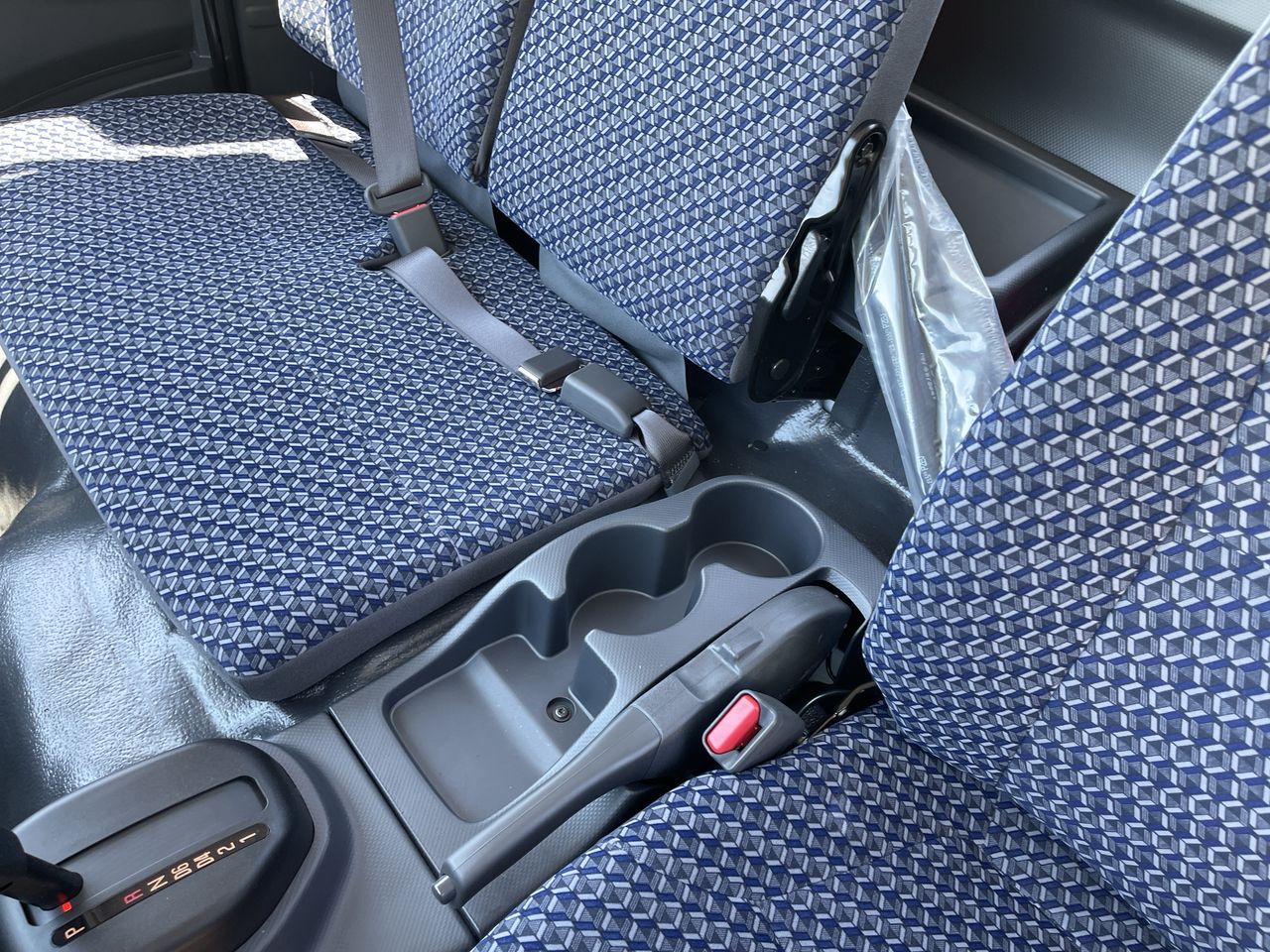 - Seat, front high back bucket driver and passenger tricot cloth covered reclining high back driver seat with single two-occupant fold down passenger seat (STD)