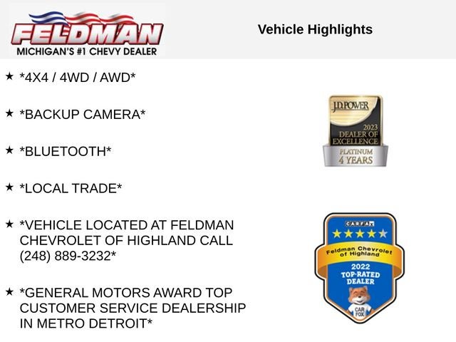Pricing of vehicles on this web site does not include options that may have been installed at the Dealership. Pricing may include current promotions, incentives, and/or bonus cash. Monthly payment calculator is an estimate and does not include tax, title, license or doc fees. Please contact the Dealership for latest pricing and monthly payment. Published price subject to change without notice to correct errors or omissions or in the event of inventory fluctuations. Price good for 2 days only, please contact store by email or phone for details. While every effort has been made to ensure display of accurate data, the vehicle listings within this web site may not reflect all accurate vehicle items. Accessories and color may vary. All Inventory listed is subject to prior sale. The vehicle photo displayed may be an example only. Vehicle Photos may not match exact vehicle. Please confirm vehicle price with Dealership. See Dealership for details. Sale price includes GM Preferred price, employee vehicle allowance, Purchase Bonus Cash and other applicable north central region rebates. Must qualify for GM Employee discount, others will be slightly higher. Just add title, tax, license and doc fee. Read disclaimer for eligibility or contact us via email, phone. Offers available only to residents of MI and select counties of IN, KY, NY, OH, PA, and WV. Offers not compatible with most other offers. Offer subject to change without notice. See dealer for details. Vehicles may have more mileage than stated due to test drives, demonstrator units, service vehicles, dealer trades, etc; see dealer for details. Tax, title, license (unless itemized above) are extra. Not available with special finance, lease and some other offers. Tax, title, license (unless itemized above) are extra. Not available with special finance, lease and some other offers.